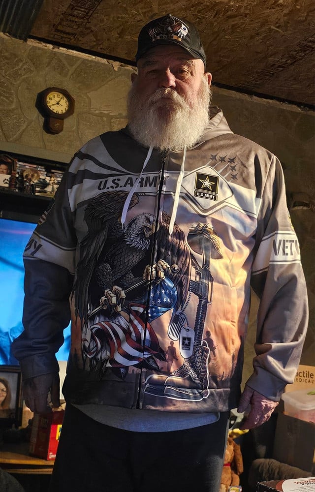 My hoodie is great. I am totally satisfied with the quality of all of your products I have purchased and received. Per your request I am enclosing several photos of my hoodie on. If you like any of them you may post one or more of them on your website. I enjoy doing business with your company